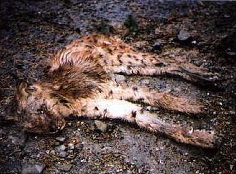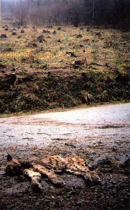 Uhynulá rysice nalezená v CHKO Beskydy v obci Krásná (20. 11. 2002)