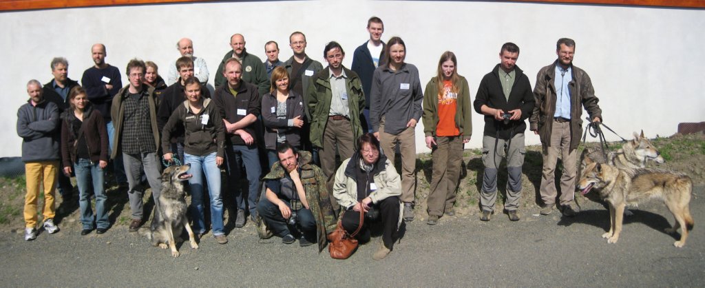 Společná fotografie učastníků semináře "Perspectives of wolves in Central Europe" (foto F. Steffens, předchozí fotogtafie: M. Janča a M. Kutal)