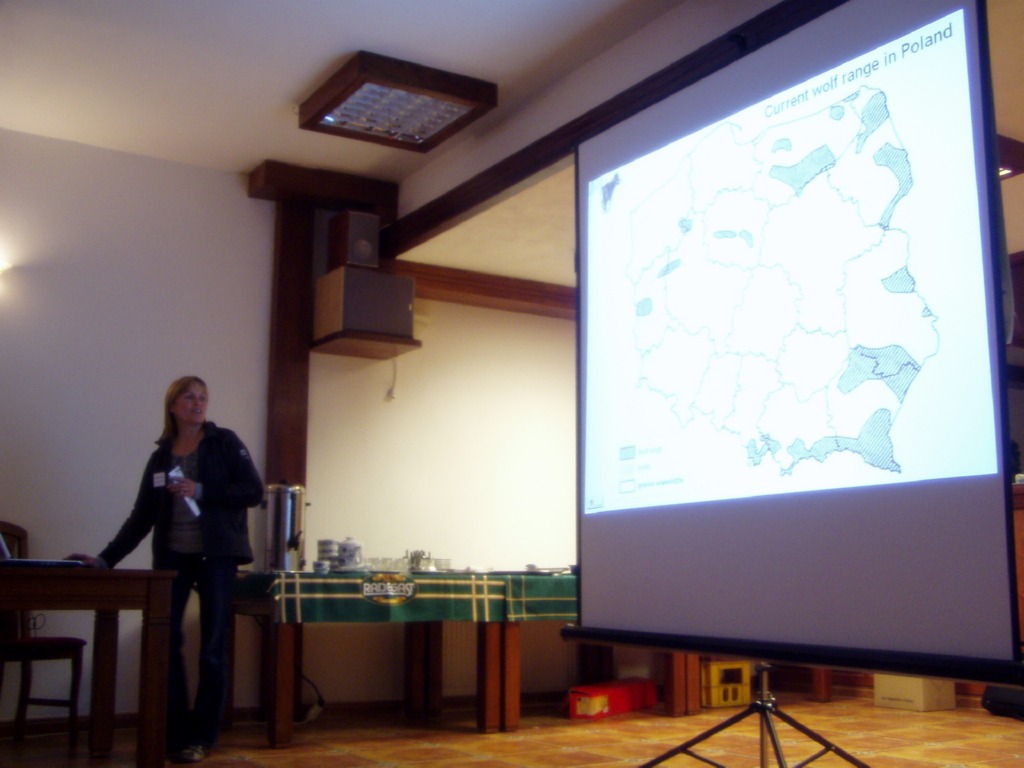 Sabina Nowak a Robert Mysłajek ze sdružení WILK uvedli současnou polskou situaci. Velmi dobře je v Polsku organizovaný monitoring, na kterém se významnou měrou podílí i lesníci a myslivci. Sabina Nowak shrnula výsledky mnoha dlouhotrvajících výzkumů z Bialowieze i polské části Karpat a zmínila hlavní ochranářské opatření: ochranu ovčích stád před útoky vlků a vymezení a ochranu migračních koridorů. V Polsku je na rozdíl od Slovenska vlk celoročně chráněn. Přísná ochrana je některými myslivci uváděna jako kontraproduktivní, vedoucí k zvýšenému podílu ilegálního odlovu a celkovému poklesu populace. Tato teorie však zatím nebyla exaktně prokázána a zkušenosti z Polska, které obývá zhruba 600 vlků, toto nepotvrzují. Problémem pro západokarpatskou populaci vlků tak zůstává nejednotný management, který narušuje stabilitu vlků na obou stranách hranice.