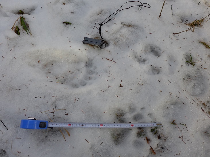Pre širšiu verejnosť aj výskumníkov, sú najzaujímavejšie veľké šelmy. Na Slovensku máme všetky tri, v ako takých počtoch. Predovšetkým, medvede. Tie sa tak často v Českej republike nevyskytujú. Medvede nespia, veď im je teplo. Pošťastilo sa mi, že za dedinkou Hrboltová (Veľká Fatra) nájdem stopy z rána. Čerstvosť stopy sa v snehu dá rozlíšiť viacerými spôsobmi. Najlepšie sa rozoznáva podľa ostrosti detailov. Napríklad na odtlačku mozoľov alebo pazúrov. Čím staršia je stopa, tým sú tieto detaily menej rozoznateľné, stopa sa roztápa - rozostruje. Závisí však aj na type snehu. Tieto stopy som našiel v mokrom snehu za relatívne teplého počasia a sú ostré. Preto súdim, že sú čerstvé, len niekoľko hodín staré. Medveďa som vo voľnej prírode už viackrát videl. Niektoré zážitky spadajú do kategórie blízke stretnutia. Neváham pustiť sa po stope. Stopujem čo to dá, i keď v lese je to zložitejšie, pretože snehu nie je dostatok. Pobehujem, vrátim sa, čupnem si, sledujem. V takýchto prípadoch pomôže každá zlomená vetvička, rozhrabaný krtinec či mravenisko, škrabance na stromoch. Na jar môžete nájsť viaceré stopy od drápov aj na spadnutých stromoch. To medvedica učila svoje potomstvo lesnému správaniu. Nakoniec som bezpečne vystopoval tak dve tretiny dráhy zobudeného. Predsa som nevyspatému macovi nechcel do brlohu vliezť. Takýto úsudok situácie je pri stretnutí s medveďom vždy kľúčový. Naše správanie často definuje správanie medveďa. Snažím si preto zachovať úctu a rešpekt. Výsledok medvedieho zimného správania je zrejmý. Prebral sa, zišiel na vnadisko, prevrhol rozhrýzol, posnoril a šiel si ležérnym tempom zase ľahnúť. Jedinec to bol veľký - 20 cm zadná stopa to je už celkom dospelák.