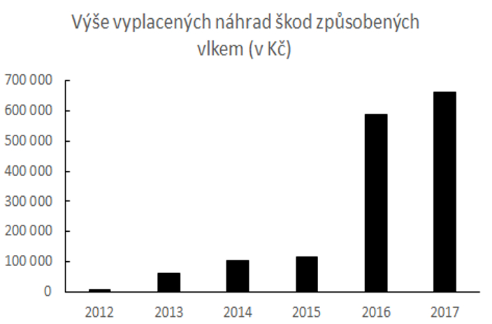 Ze statistik, které jsme letos a v minulých letech získali od všech krajských úřadů, které žádosti administrují (a mají tedy detailnější informace než Ministerstvo financí), je možné získat věrohodnější obraz situace. Především vychází trochu jiná čísla o množství škod: mezi roky 2016 a 2017 došlo k nárůstu z 587 na 661 tisíc, tedy o 12,5 %. Důvod je ten, že ČMMJ prezentuje informace o výši vyplacených náhrad, kdežto naše údaje jsou sktrukturovány podle data vzniku jednotlivých škod (ne data vyplacení), což lze dát lépe do souvislosti s vývojem vlčí populace. Datum vyplacení náhrad je totiž značně náhodné závisí na rychlosti a benevolenci úředníků, složitosti případu a podobně. Také stojí za zmínku fakt, že více než 50 % z výše vyplacených náhrad v obou letech tvoří náhrady za 4-5 nejrozsáhlejších útoků, při kterých je vyplacená částka 40 - 130 tisíc za jeden případ. Dalším důvodem růstu škod (i když nepatrného) jsou vyšší náhrady, které MŽP na žádosti svazů chovatelů ovcí doporučuje vyplácet.