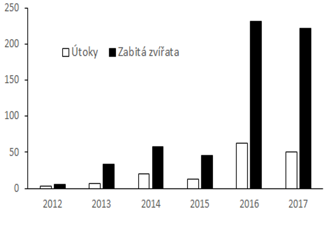 Zajímavější je proto údaj o zaznamenaném počtu útoků i zabitých zvířatech (a to i včetně těch, které nebyly kompenzovány, tedy ve statistikách MF ČR nefigurují): Mezi roky 2016 a 2017 oba údaje mírně poklesly, navzdory minimálně dvojnásobnému nárůstu vlčí populace.