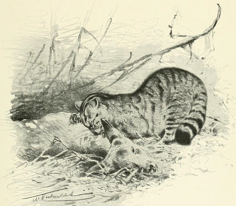 Náčrt evropské kočky divoké z přelomu 19. a 20. století z knihy Richarda Lydekkera